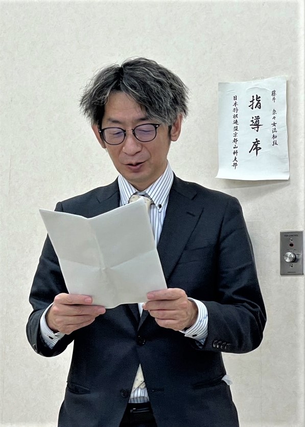 1、主催者挨拶: 日本将棋連盟京都山科支部 支部長 小野巖