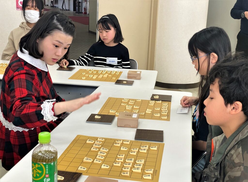 プロ棋士4名によるそれぞれ4面指しの指導対局(阿部隆九段 畠山鎮八段 西田拓也五段 藤井奈々女流初段)